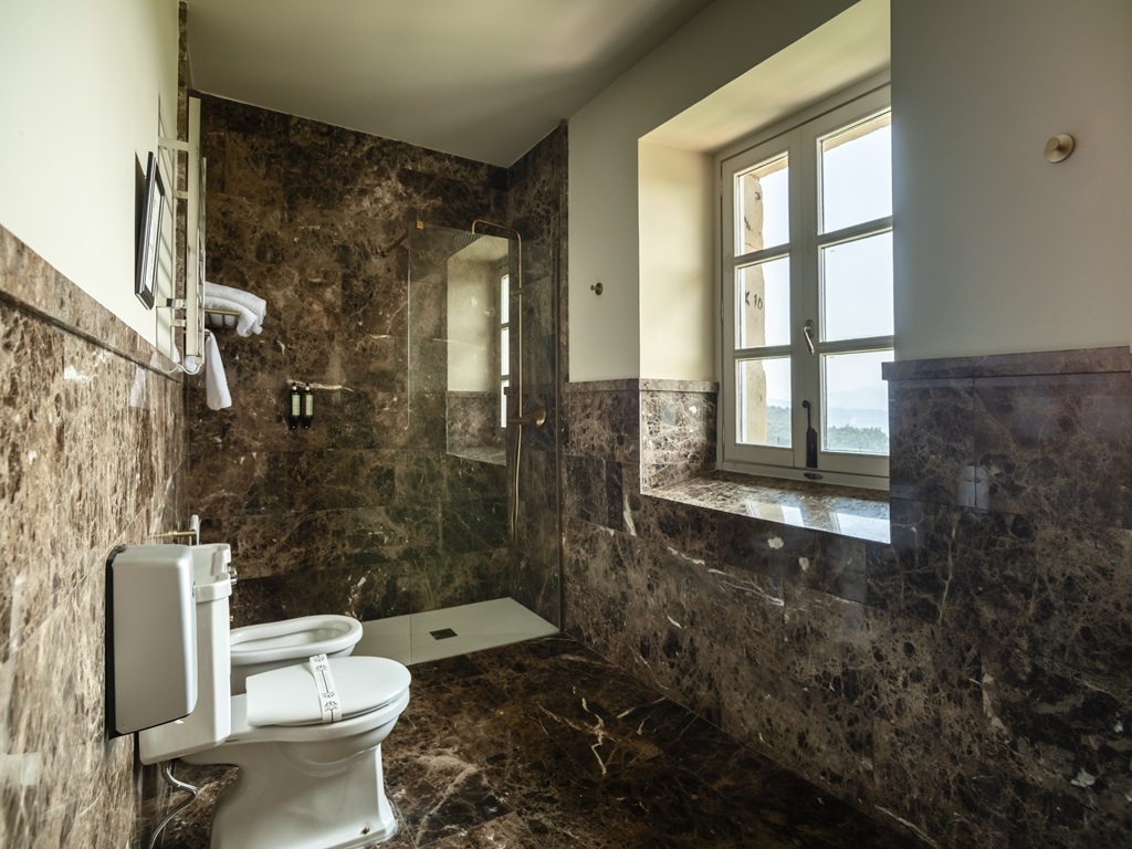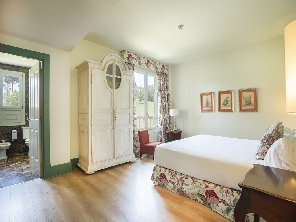 Chambres avec vue sur l'extérieur. Spacieuses et lumineuses, elles disposent d'une salle de bains en marbre. Elles peuvent être configurées avec un lit double de 1,80 m ou des lits jumeaux. Accès gratuit à la piscine intérieure chauffée.